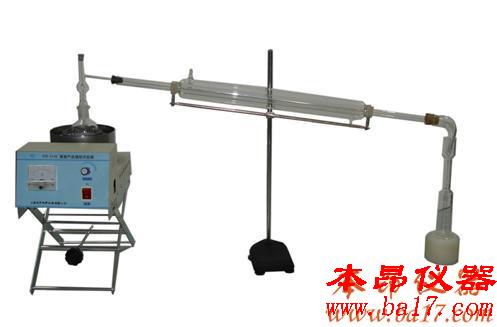 5、冷凝裝置: 冷凝管全長800mm,外包450mm的水冷卻管。另配牛角管和100毫升的異徑量筒。