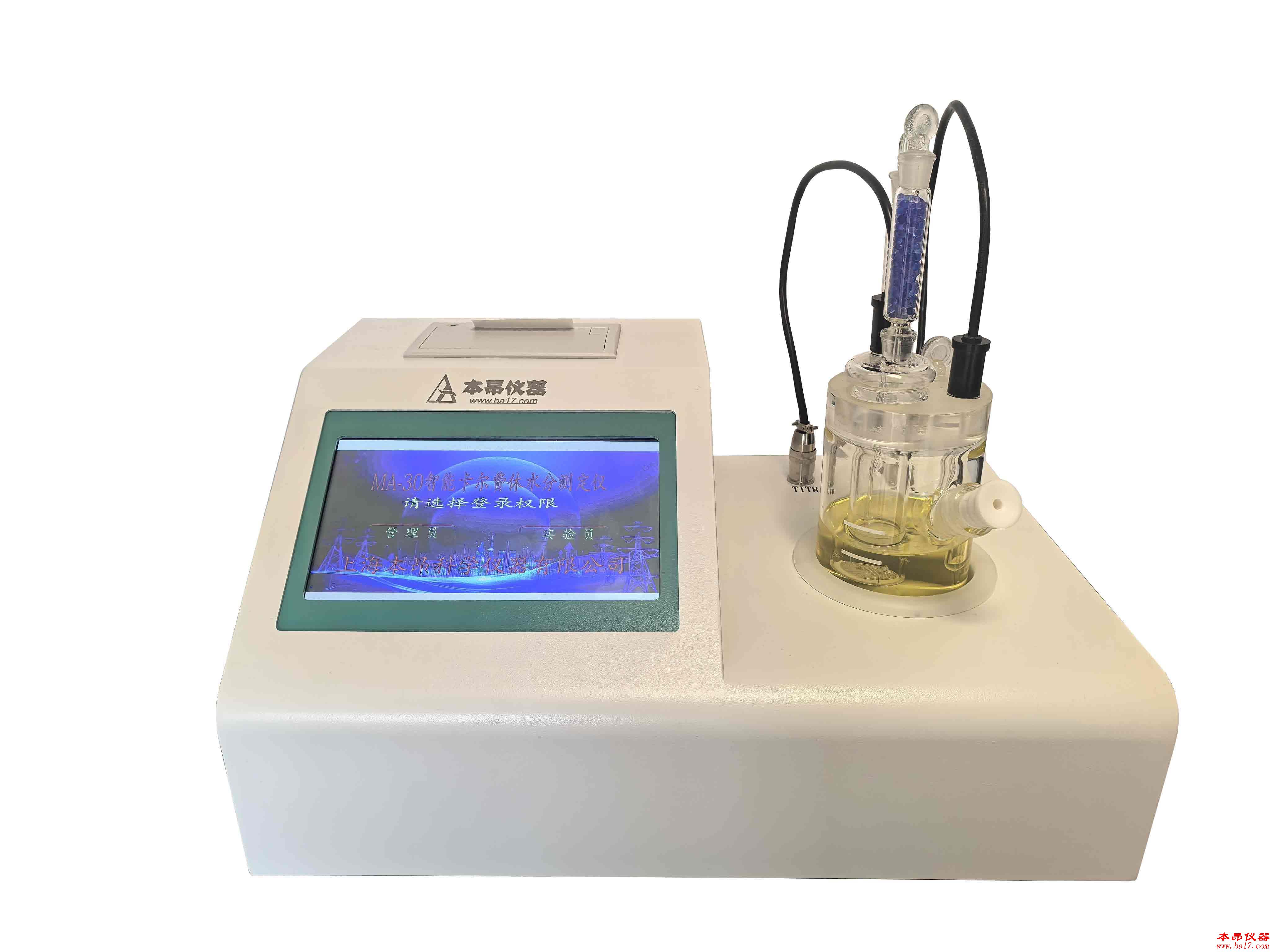 MA-30智能卡爾費休水分測定儀中文液晶顯示、觸摸操控,并具有管理權(quán)限、測試過程動態(tài)曲線顯示、自動計算、數(shù)據(jù)存儲和打印、功能,分辨率精確至0.001μg(1ng)!